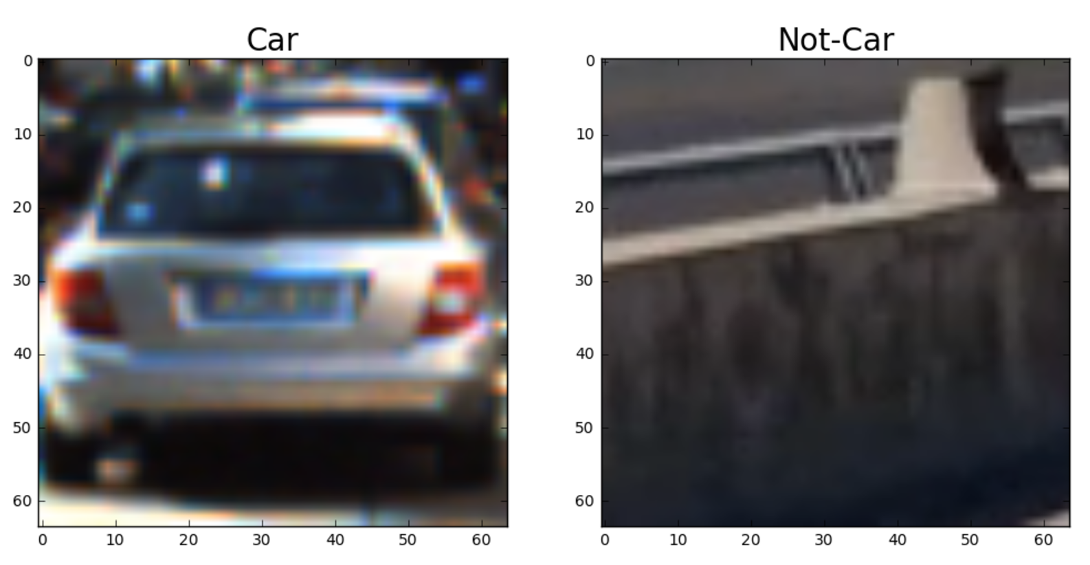 I started by reading in all the vehicle and non-vehicle images. Here is an example of one of each of the vehicle and non-vehicle classes: