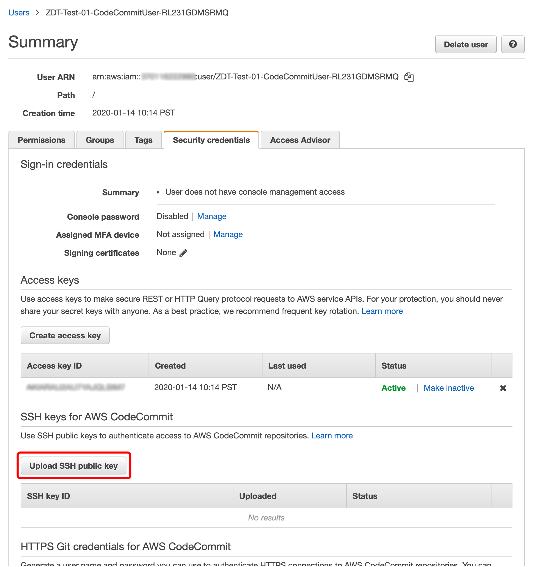 2) Upload the SSH Public Key to the IAM User