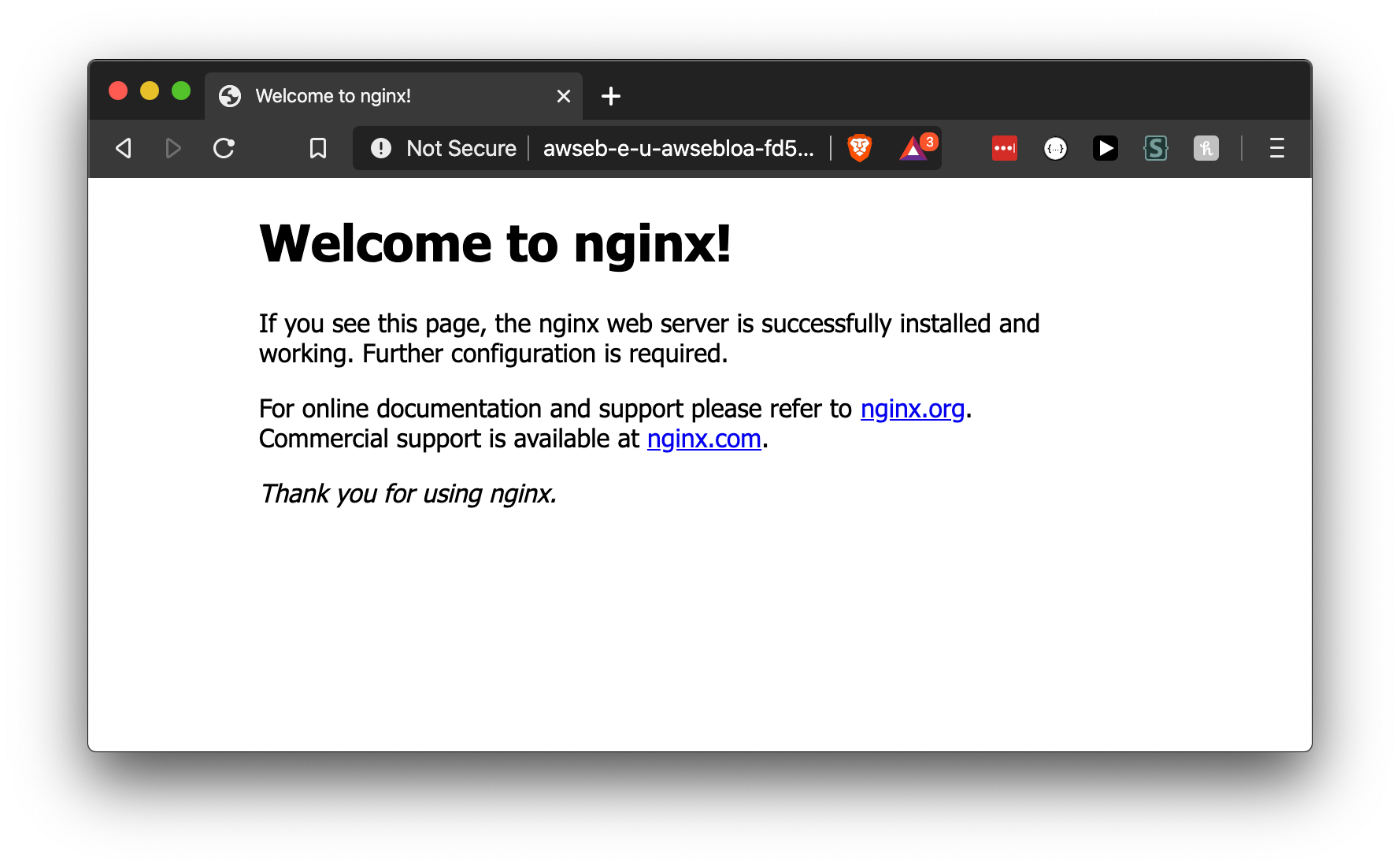 Open the EBApplicationEndpoint in your browser and you should see this: