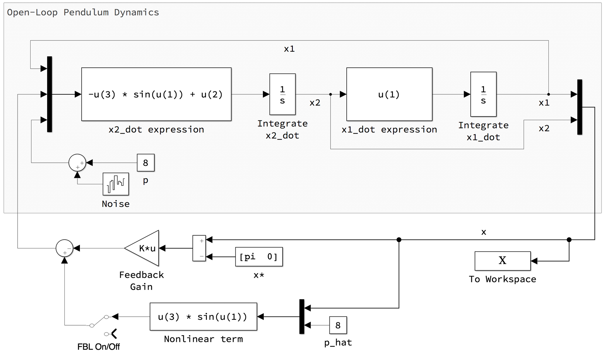 We will build off of the Simulink model from a previous post for simulating nonlinear dynamics using a state feedback controller.