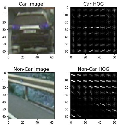 I started by reading in all the vehicle and non-vehicle images. Here is an example of one of each of the vehicle and non-vehicle classes: