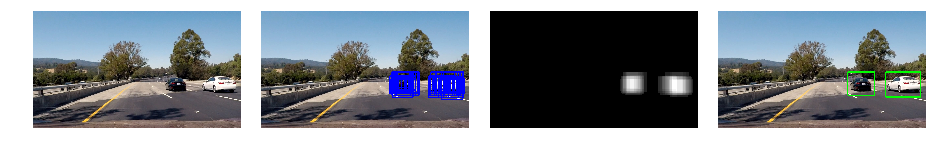 test_video.mp4and later implement on fullproject_video.mp4) and create a heat map of recurring detections frame by frame - Use the heatmap to reject outliers and follow detected vehicles.
