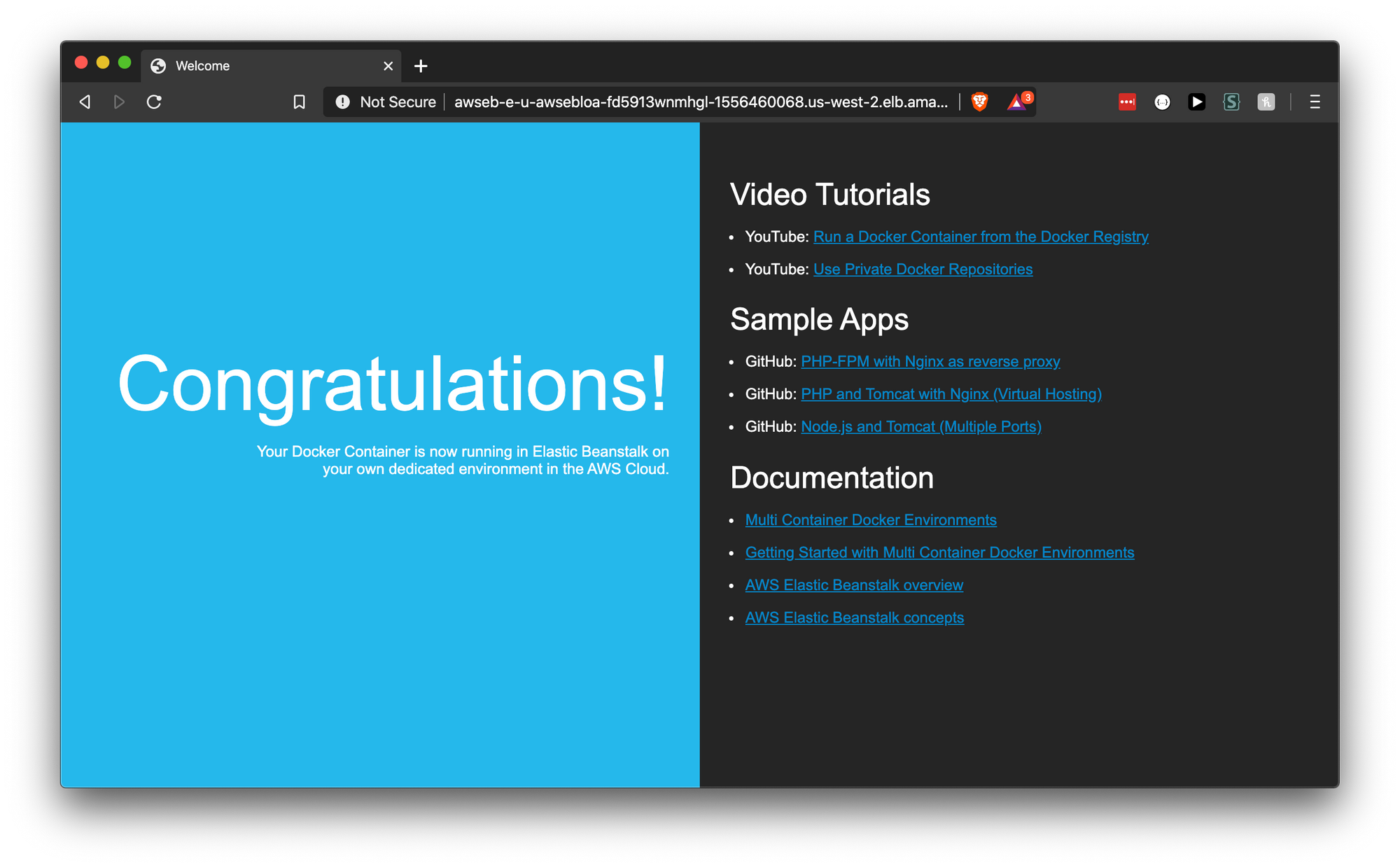 When the deployment is done, navigate to the EB environment URL and you should see this: